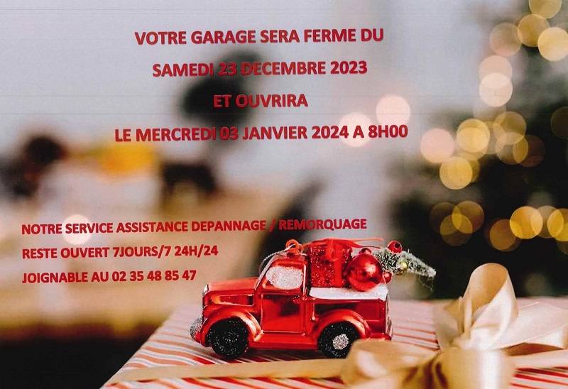Pour information les dates de fermeture du garage pour les congés de noël 2023.